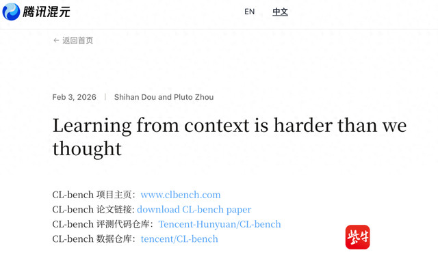“即使是如今最强的语言模型,在上下文的利用方面仍然做得不好,甚至可以说是还不会利用上下文,从上下文中学习。”2月3日,腾讯混元官网技术博客(TencentHYResearch)发表了一篇名为《从上下文中学习,远比我们想象的要难》的文章,系统的介绍了腾讯混元团队联合复旦大学的一项新研究。